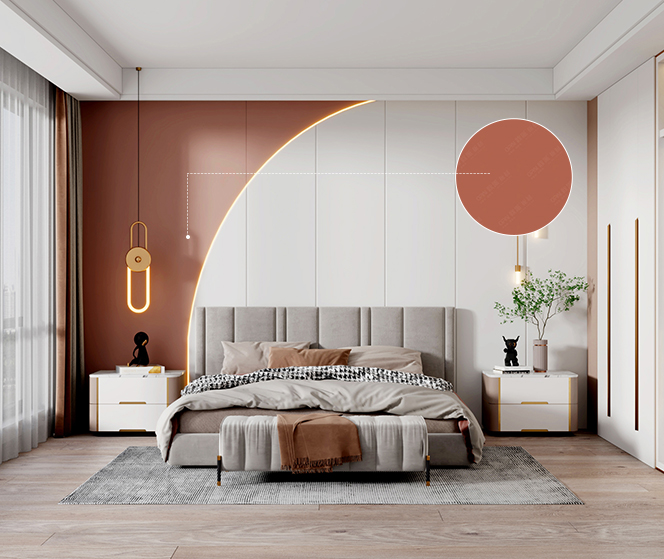 若想打造溫馨而活力的居住空間,低飽和度的暗磚紅色能更好的融入現代極簡風格中,紅色元素+暖白色,結合弧形造型,輕松營造簡潔明快,溫馨熱情的氛圍。