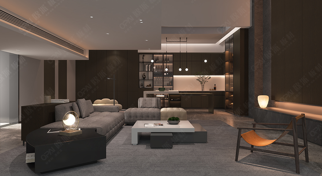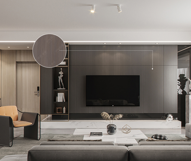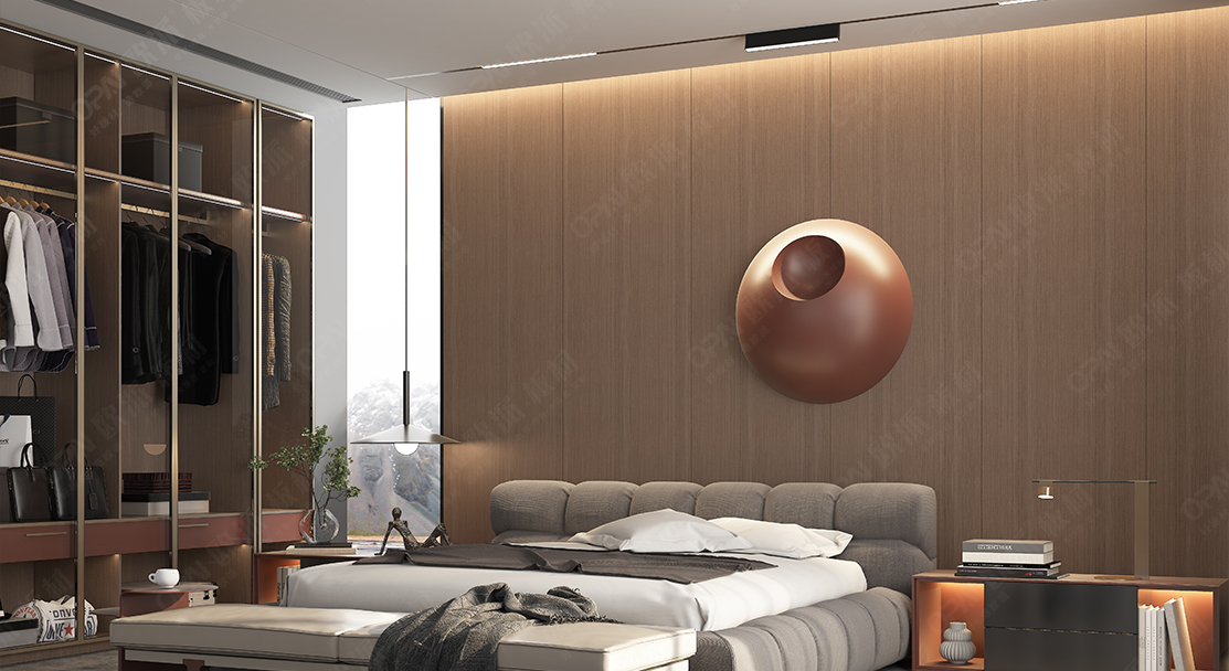 本案在材質的選擇上以深色調的木材為主,極簡主義空間更注重質感和整體的協調性。局部適以暖色的低飽和度材質調色,溫馨而不浮夸。生活節奏的加快,寧靜,舒適,瞬間放松的家的港灣,成為我們大部分生活人的向往!